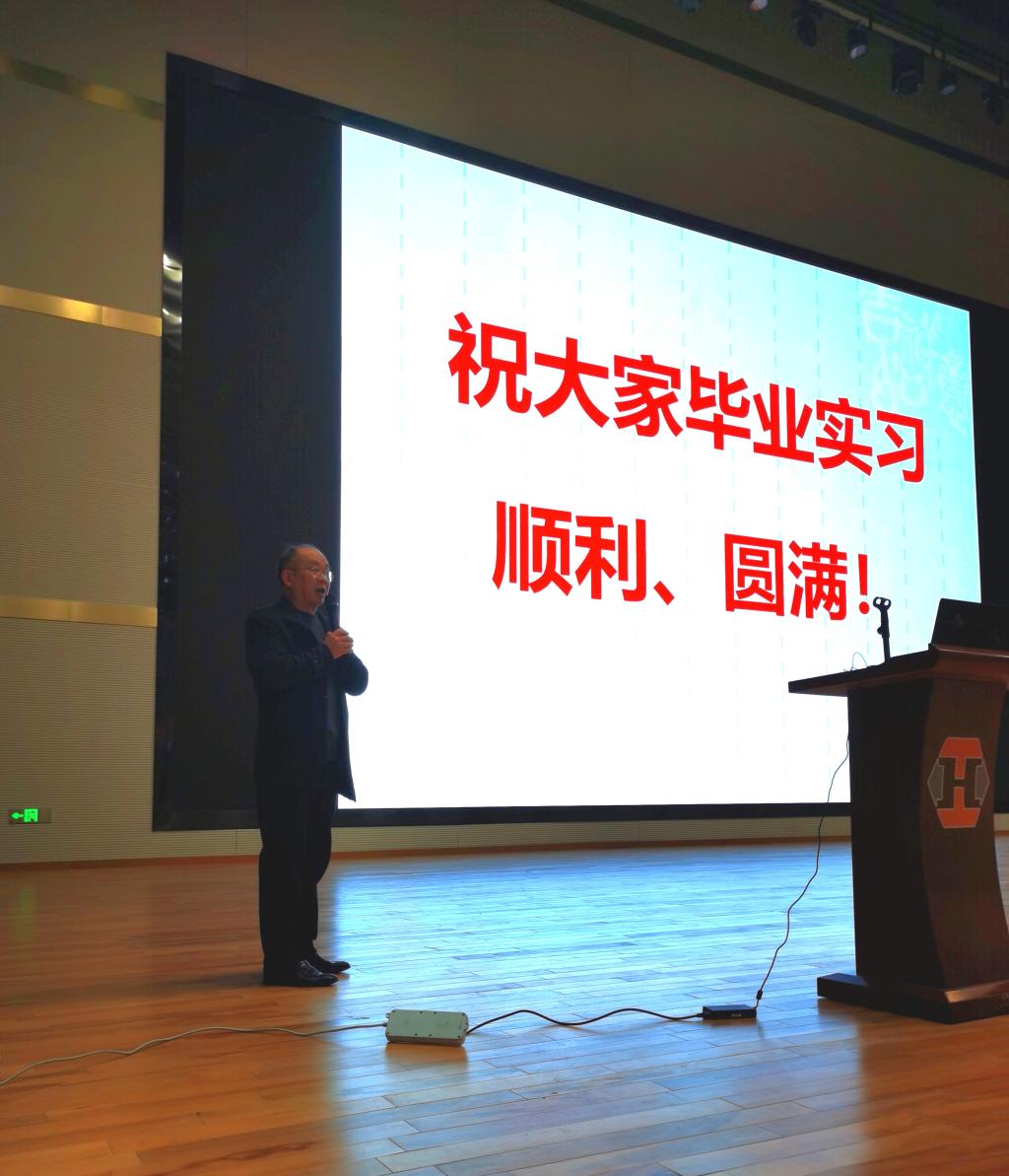 学院党总支副书记谢战锋对毕业生提出三点意见:一是谨记安全第一,注意人身和财产安全、交通安全等相关安全问题;二是学会沟通,在单位多与同事、领导沟通汇报,提升自身社会交往能力;三是要遵守学校和实习单位相关纪律。