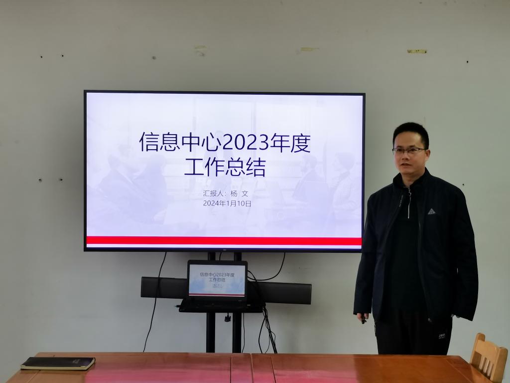 为全面总结2023年工作成绩与不足,明确2024年工作重点,科学部署下学期工作,1月10日,信息中心召开期末工作总结会议,中心全体人员与第三方运维外包人员参加会议,会议由中心副主任陶影主持。
