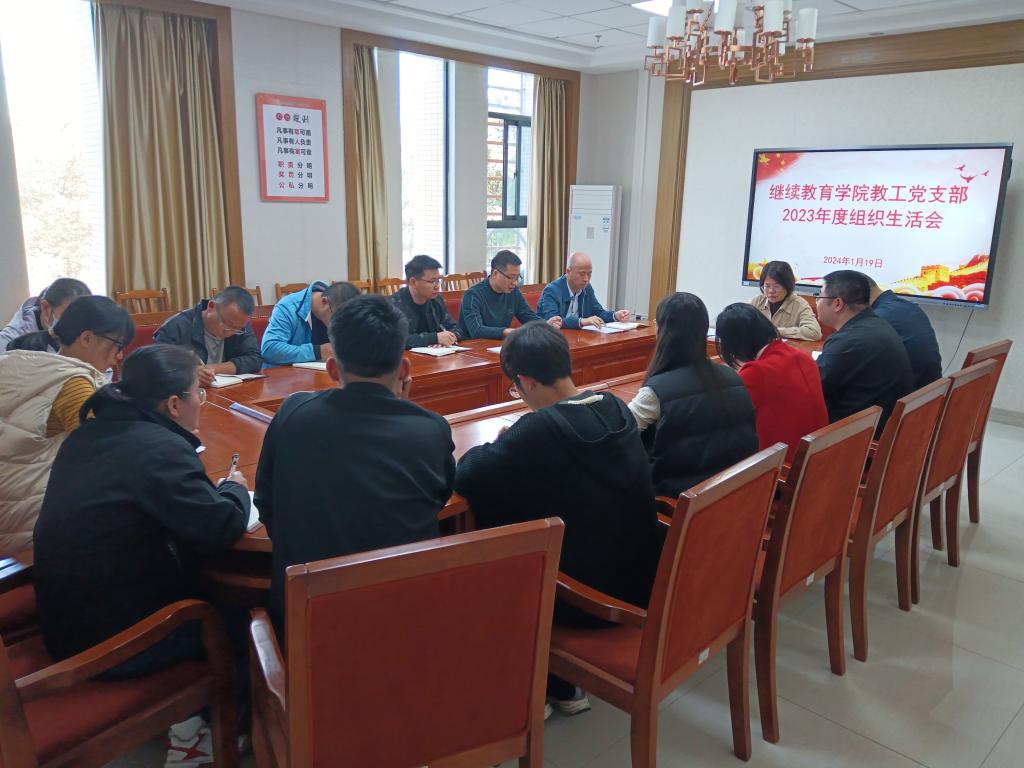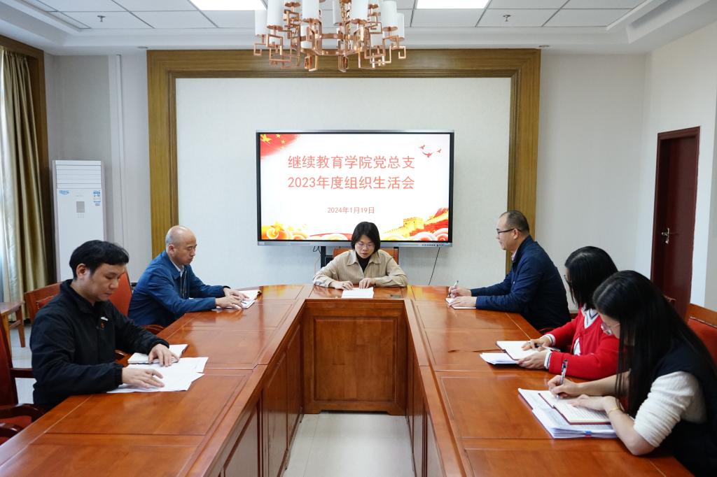 1月19日,继续教育学院党总支在学院会议室召开2023年度组织生活会。党总支全体支委、专职组织员参加会议,会议由党总支书记李文萍主持。