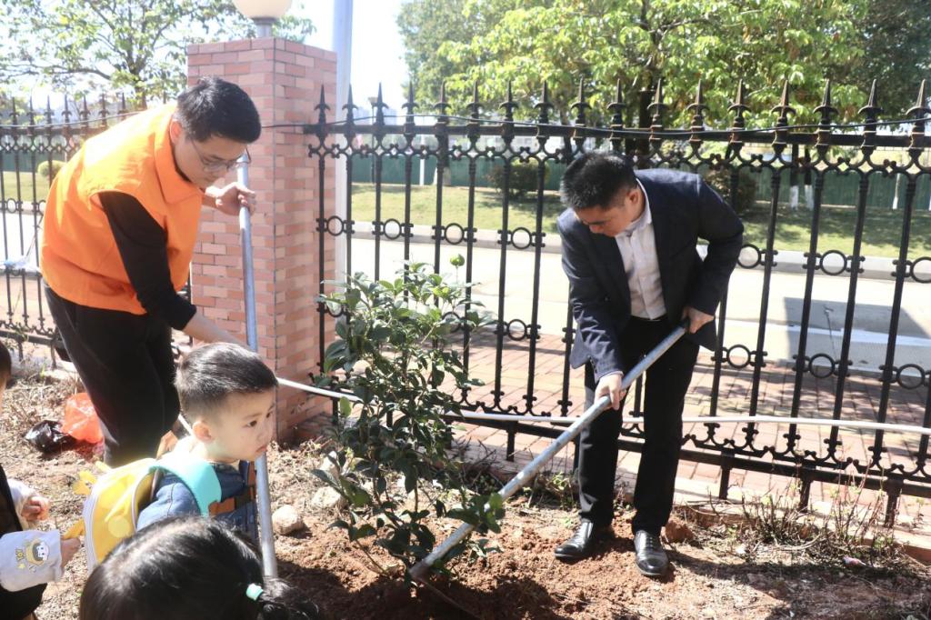袁光华副校长、党员志愿者与孩子共同种下“小树苗”
