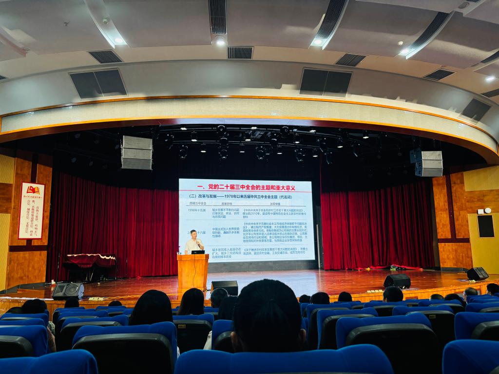 杜伟祥院长在宣讲会上带领大家深入学习了党的二十届三中全会的主题和重大意义,强调了《中共中央关于进一步全面深化改革、推进中国式现代化的决定》的核心内容和深远影响。他指出,此次全会是在我国推进强国建设、民族复兴伟业的关键时期召开的重要会议,标志着全面深化改革进入新的历史阶段。