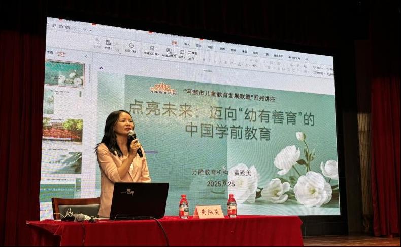 特邀嘉宾、万隆教育机构资深园长黄燕美以《点亮未来:迈向“幼有善育”的中国学前教育》 为题,发表了演讲。她立足国家政策与行业发展高度,深刻阐述了“幼有善育”的核心理念与实现路径,分析了新时代对幼师核心素养提出的挑战与机遇,激励学子们要立志成为具备崇高师德、先进理念与卓越能力的未来教育者。