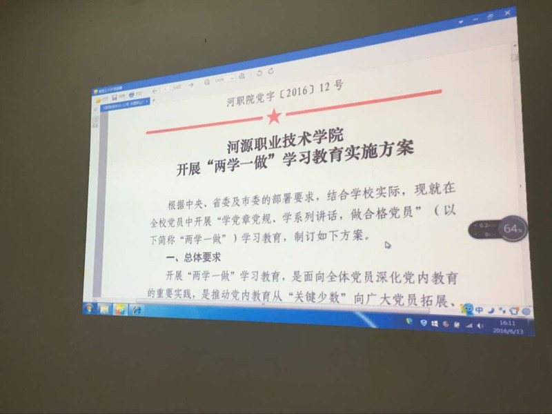 最后,党支部书记杨文作了动员讲话,他强调,开展“两学一做”学习教育,是全党政治生活中的一件大事,我们必须提高认识、注重学习,在活动中做到以下几点:(1)是加强组织协调和宣传引导,党支部领导班子要充分履行分管职责;(2)党员领导干部要带头参加“两学一做”学习教育,在党支部内部起到示范作用;(3)要结合实际工作中的问题进行有目的的学习,确保活动落到实处;(4)丰富学习的形式,注意与校内其他党支部保持联系,互相借鉴活动的成功经验。