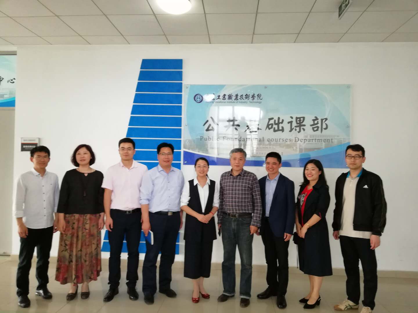 南京工业职业技术学院商务贸易学院副院长阮晓文、公共基础课部主任陈桃源以及相关教研室负责人参加本次调研。双方分别介绍了所在学院概况,并着重在商务英语专业实训室建设、校外技能竞赛、校企合作、数学建模实训室以及公共英语教学改革等方面进行深入交流,效果良好。