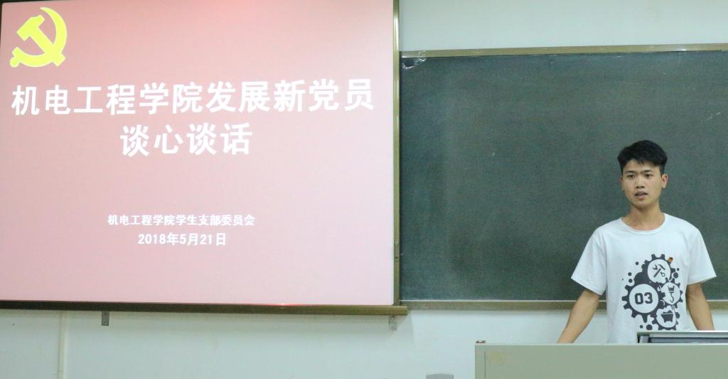 5月21日晚,机电学院学生支部“发展新党员谈心谈话”活动在教学楼B209举行,学生党支部杨成书记、组织委员黄章华老师以及31、32期建党对象参加了此次活动。