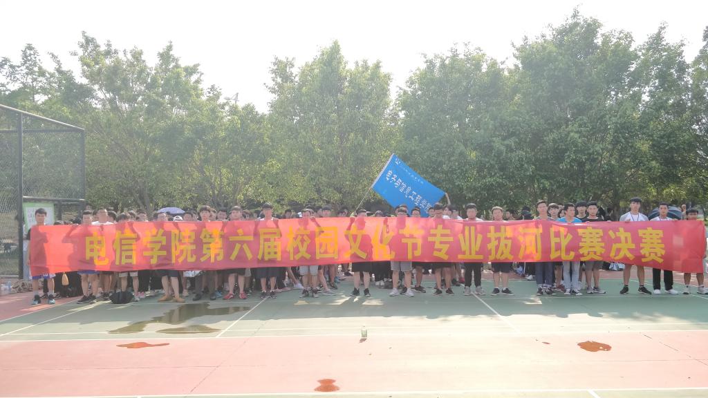 为丰富学院学生校园生活,促进专业之间的友谊交流。2018年5月26日,电信学院在篮球场举行以“团结奋进、健康活力”为主题的专业拔河比赛决赛。参加比赛人员有团总支学生会干部代表、体育部全体委员,各专业代表队,由体育部委员张晓明同学主持。
