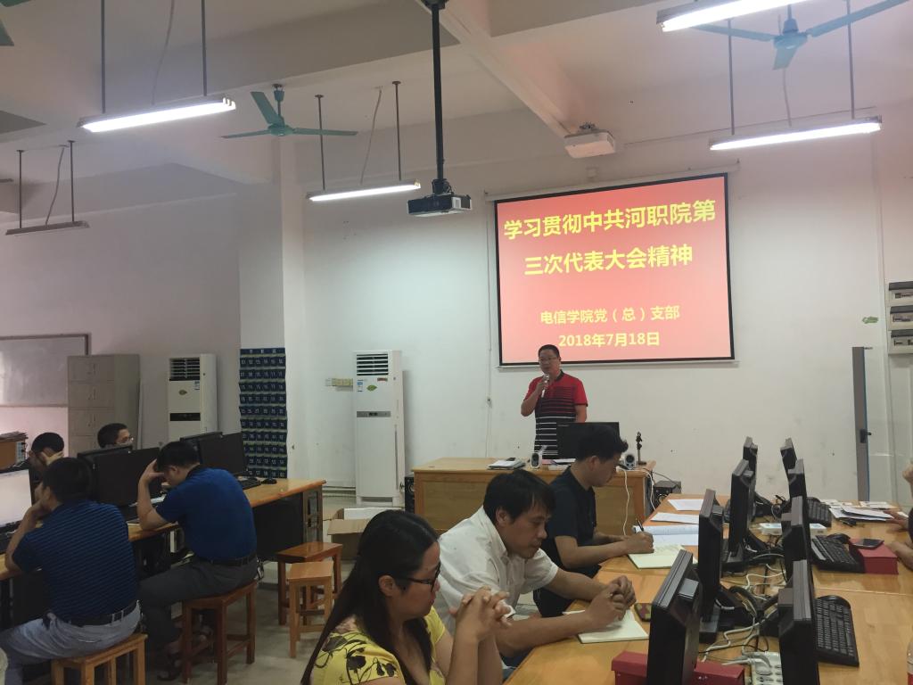 2018年7月18日下午,我院在实训楼A213召开学习贯彻中国共产党星空在线(中国)唯一官方网站第三次代表大会精神会议,学院全体教职工参加了本次会议,由学院副书记徐国辉主持。